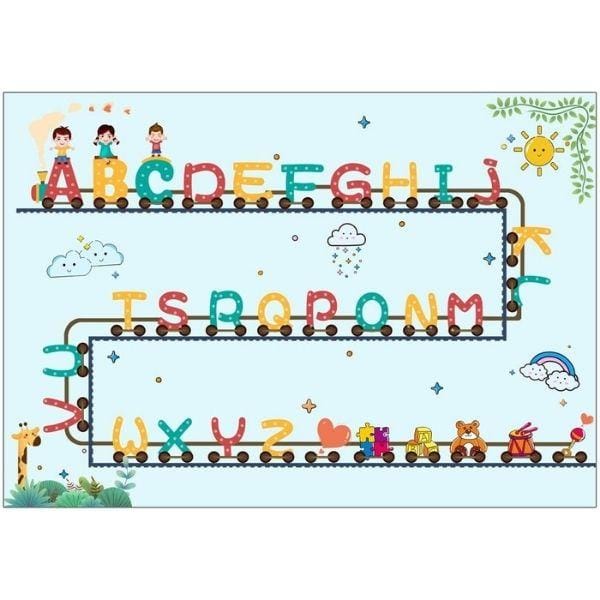 このプレイマットは、カラフルなアルファベットの文字が書かれた列車が付いており、遊びながら少しずつアルファベットと色を学べる、子供に最適な教材です。