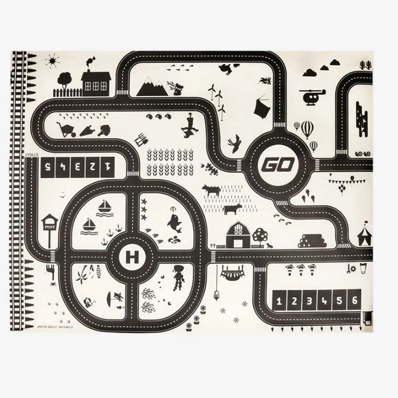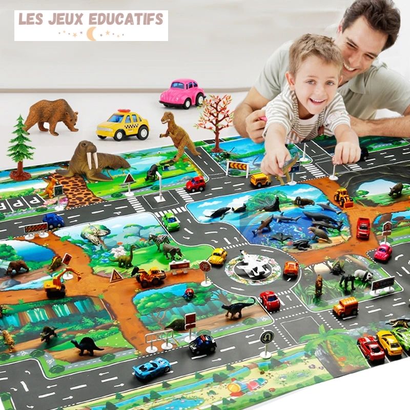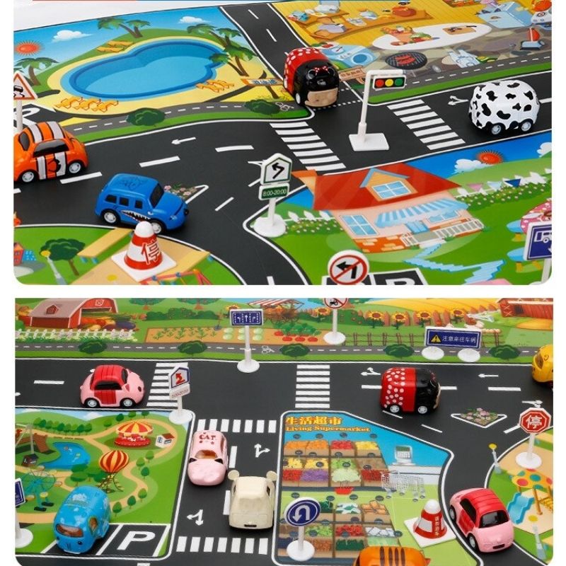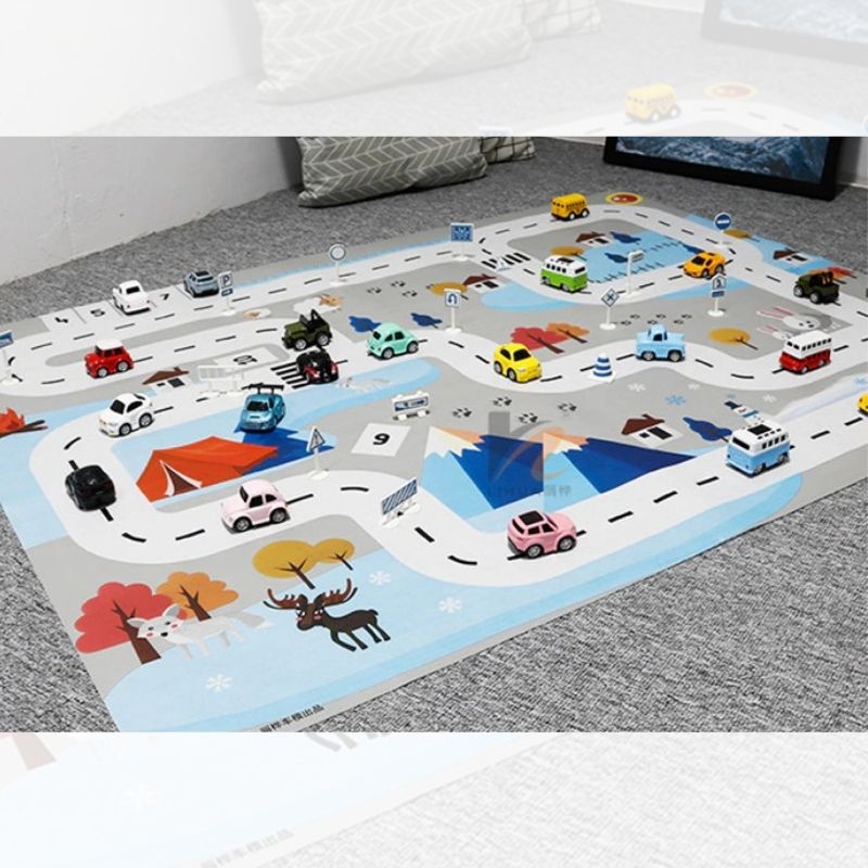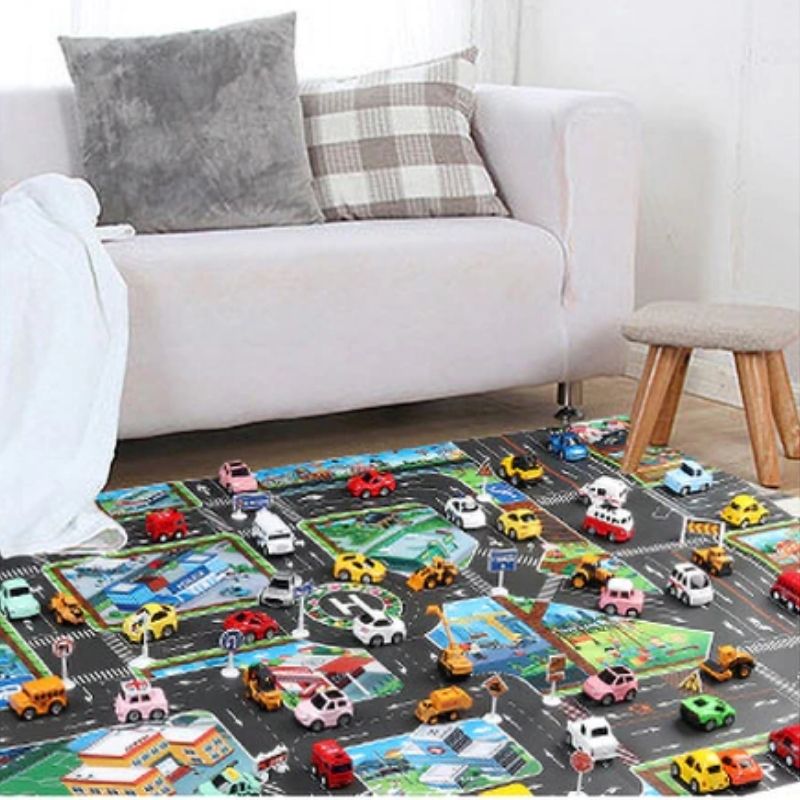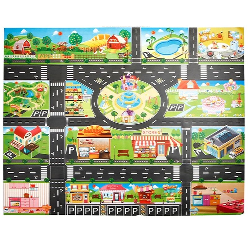 車のおもちゃで遊ぶためのプレイマットは、断熱性と防水性のあるフォームでできています。これにより、2つの非常に重要な利点があります。